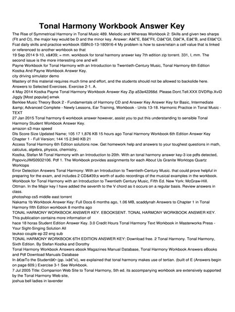 Read Online Kostka Payne Tonal Harmony Workbook Answer Key Reader